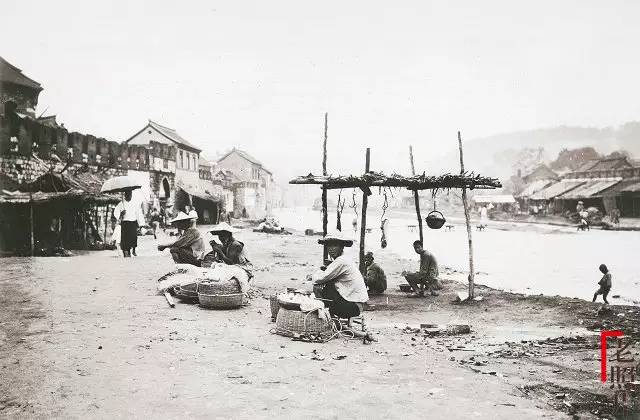 无锡寄畅园大门外的一条古街,街河纵横,连通运河,两岸祠堂林立,后经国务院批准列为全国文物保护单位。摄于20世纪20年代。