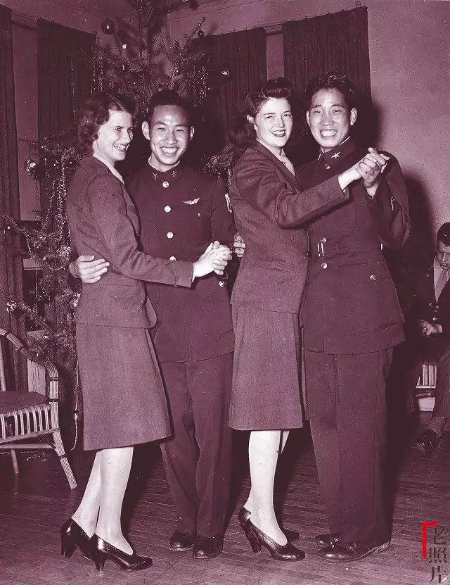 1945年圣诞夜,中国空军某部人员与驻广州的美军联欢。
