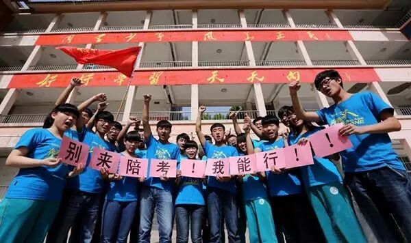 2015年6月5日,河南省焦作市武陟县第一中学高三(1)班的学生打出"别来陪考,我能行"的标语,倡议父母们别来陪考。