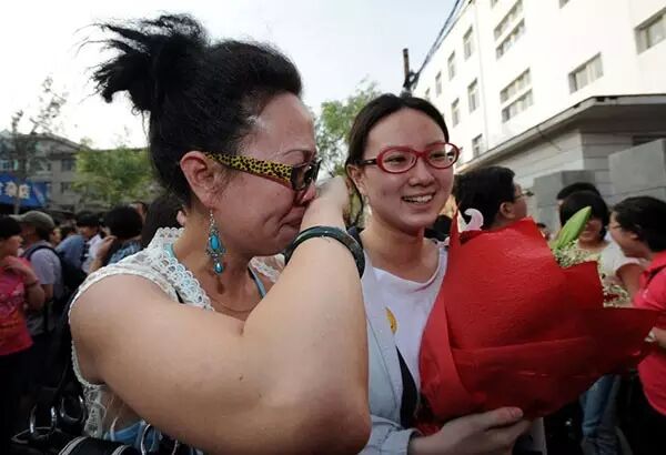 2012年6月8日,沈阳市第126中学考点,高考结束,考生走出考场,妈妈激动地哭了。