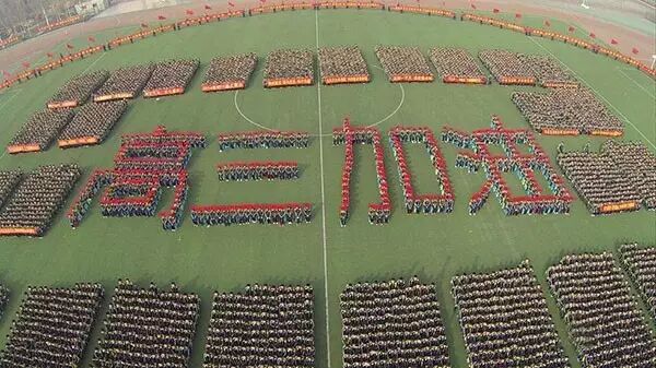 2014年2月26日,河北省衡水二中高考百日誓师活动现场,高二年级的300余名同学组成“高三加油”的字样,为高三学长加油鼓劲。