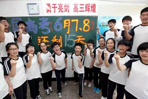 2013年5月23日,离全国高考还有15天,浙江省诸暨市海亮高中高三学生在为自己加油打气。