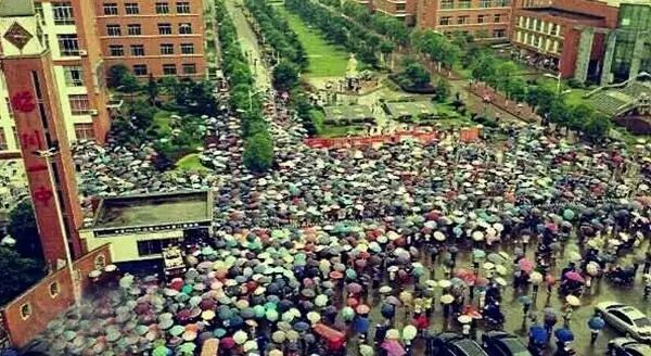 2013年6月7日,江西省临川一中,考场外冒雨前来的陪考大军。