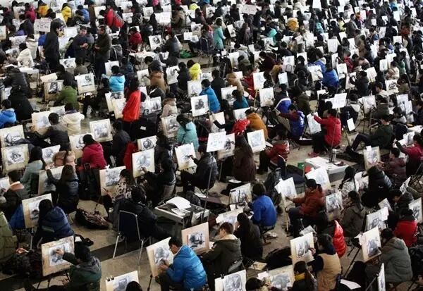 2014年2月10日,山东省济南艺术高考考场,8000多名艺术生同时进行素描考试。