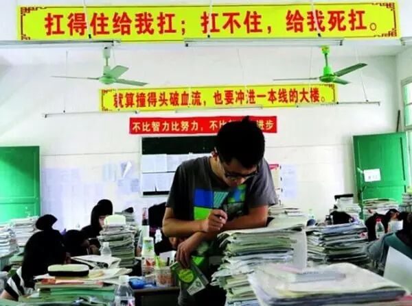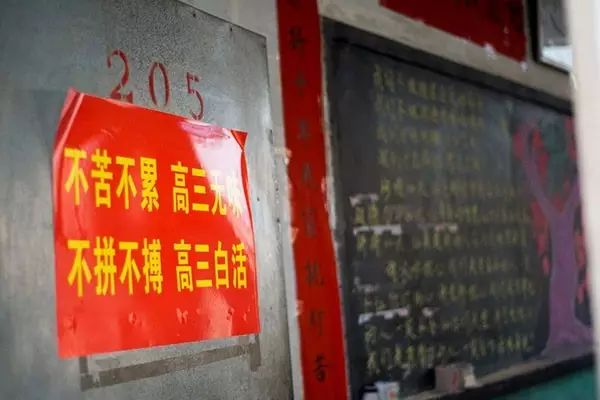 2012年2月28日,河南省宜阳县实验中学,某高三班门上的标语:“不哭不累,高三无味;不拼不搏,高三白活”。