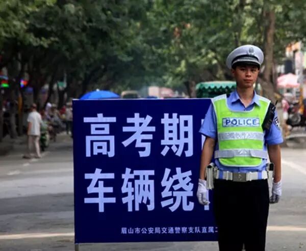 2014年6月7日,四川省眉山市,为高考学生服务的交警。