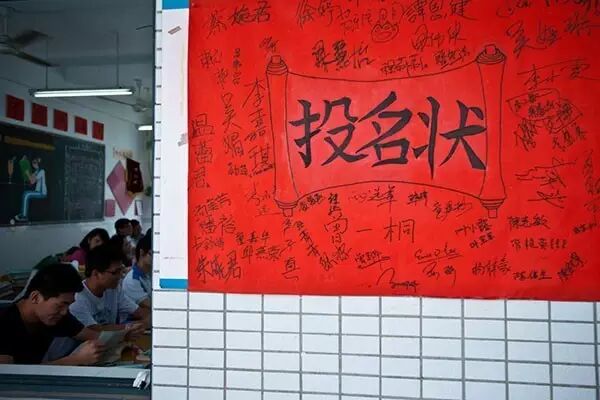 2012年5月29日,广东惠州,华罗庚中学墙上的高三学生“投名状”。