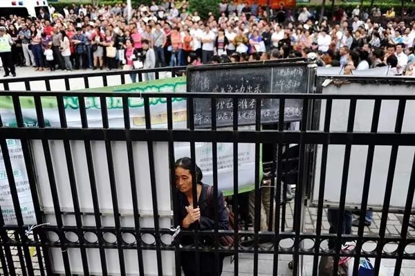 2012年6月8日,上海华东模范中学考点,一考生迟到2分钟被拒考,母亲下跪求情,但最终还是未能参加考试。