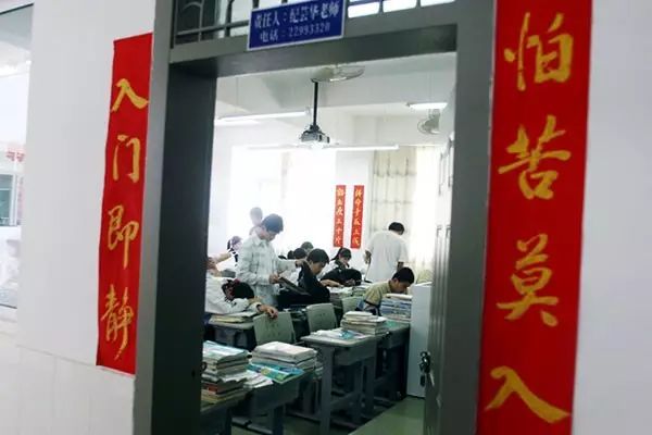 2005年4月8日,福建泉州第七中学某高三班门口写着:“怕苦莫入,入门即静”。