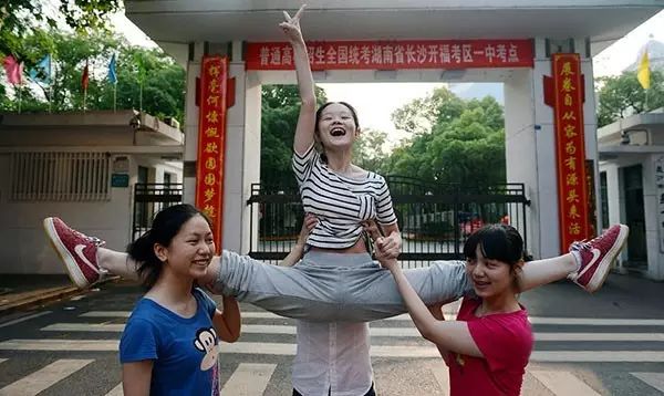 2013年6月8日,长沙市第一中学,喜欢健美操的柳沐阳(中)在高考结束后,用健美操的方式庆祝高考结束。陈勇/摄。