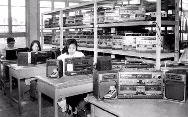 1986年,长沙,湖南广播设备厂的技术工人在检验产品。乔育平/摄。