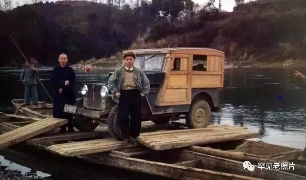 1940年代,长沙湘江,没有大桥,汽车过江只能靠木船载渡。
