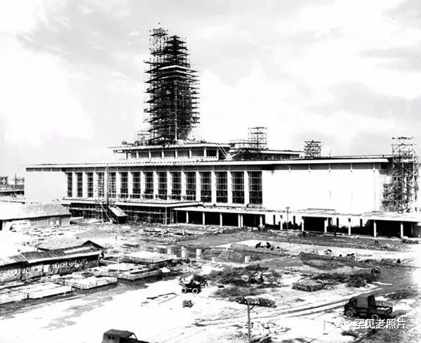 1977年,建设中的长沙火车站新站钟楼。钟友援/摄。