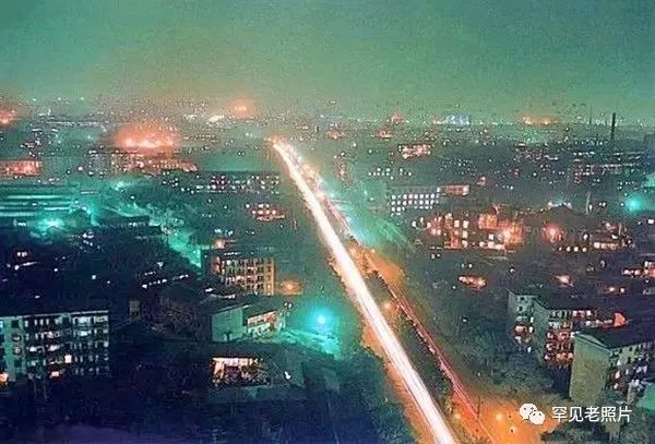 1981年4月,长沙五一中路,省政府大楼及门楼夜景。