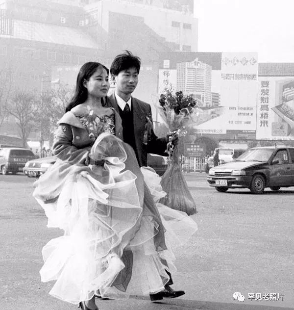 1996年元旦,长沙市五一广场,一对参加集体婚礼的新人。韩世祺/摄。