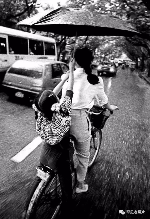 1993年初夏,长沙饭店附近,雨中的一对母女。韩世祺/摄。