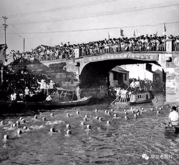 1960年代,苏州广济桥下,纪念毛主席畅游长江游泳活动。