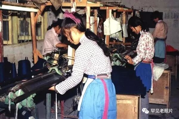 1983年,苏州胜浦镇,羊毛衫厂里的工作坊。马觐伯/摄。