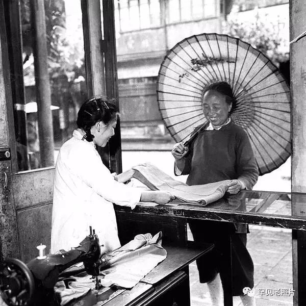 1959年,在物资紧缺年代,苏州市环秀山庄居委会设立缝补站为居民的衣服修旧翻新。晓庄/摄。