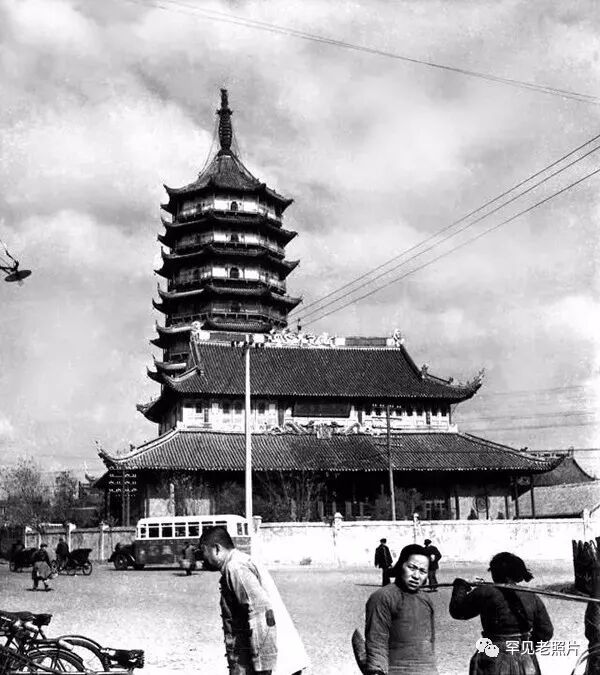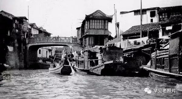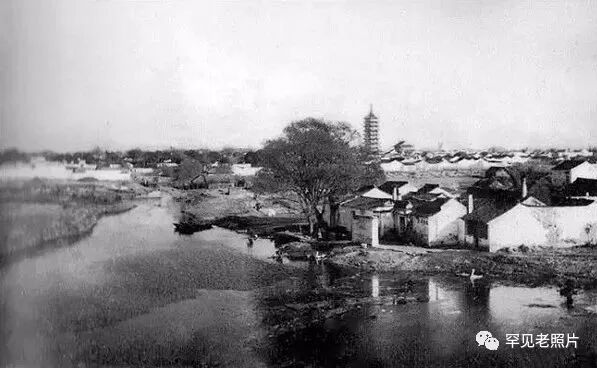 1920年代,苏州,寒山寺。照片应在船上所拍,拍时正穿过枫桥,此时的寺院门庭冷落,香火已经不盛。