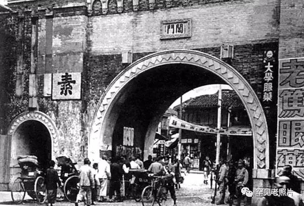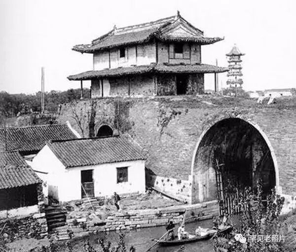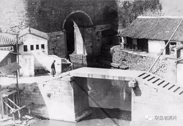 1940年代,苏州水门。盘门的水陆城门,亦是全国所少见,因苏州城的内外水路,纵横交错,四通八达,因此特别建有水路城门供舟楫进出。