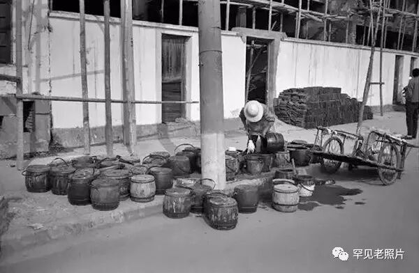 1994年,苏州人民路乐桥附近,沿街倒马桶的场景。