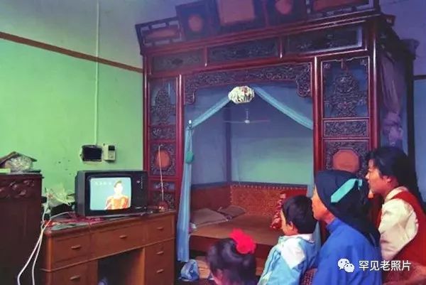 1991年,苏州,村民晚上观看《吴县新闻》。