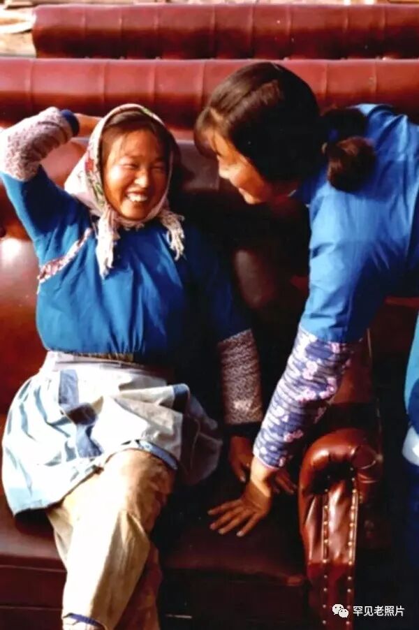 1986年,苏州吴巷村,村民在村办沙发厂里选购沙发。马觐伯/摄。