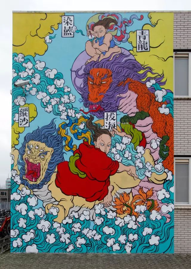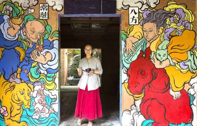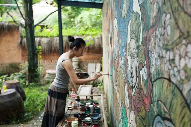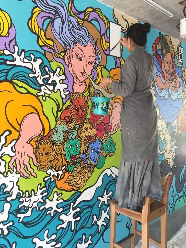 画墙绘一般使用丙烯颜料,因为价格比较低,保存也比较的完好。