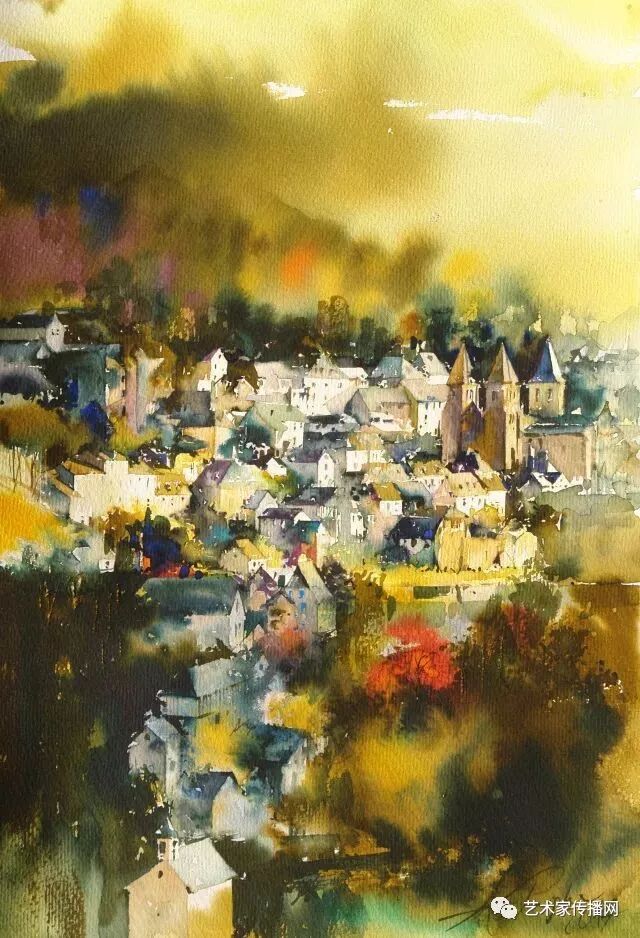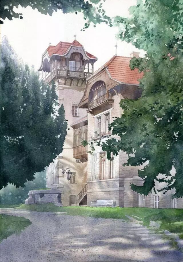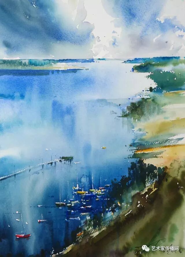 水彩是以水为媒介,调和颜料作画的表现方式,给人"水"的感觉,非常流畅和透明。