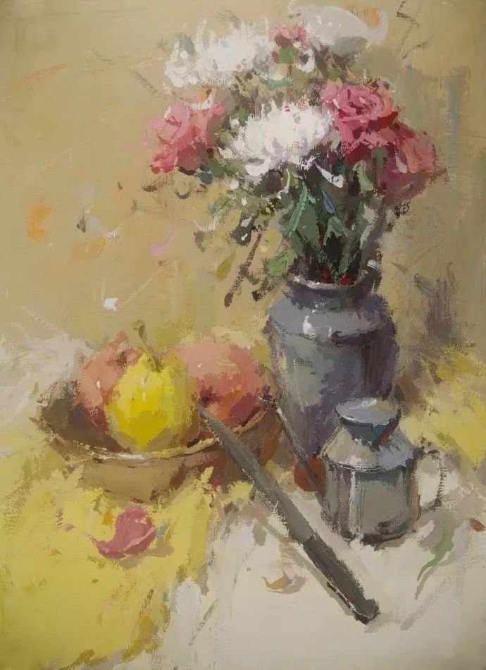 干了之后上的笔触过渡性不是很好,除非一个物体全部的上整片色彩。颜色有很多,高级灰和纯色。