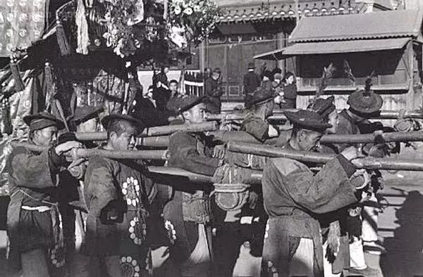 1948年12月,北平,右侧是从前皇宫里的太监。