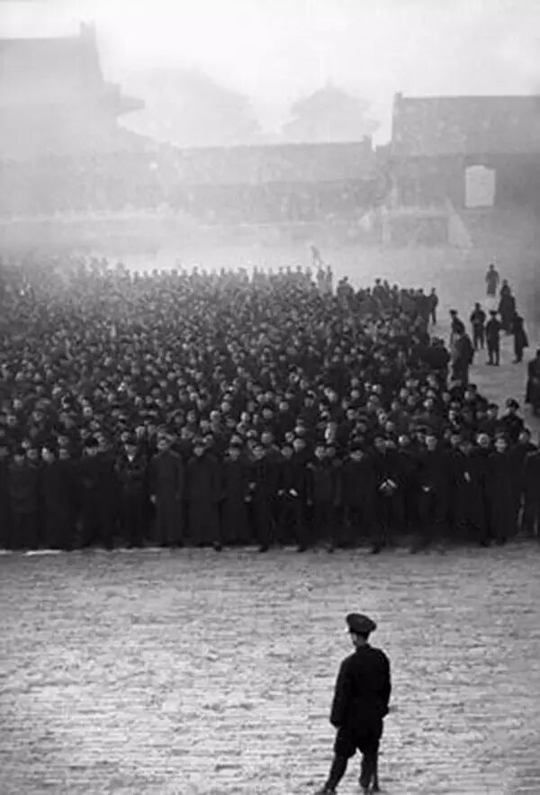 1948年12月,北平,城外被解放军包围,国民党召集的1万名新兵站在皇宫大院子内等待命令。