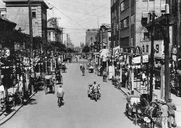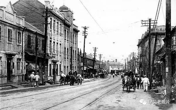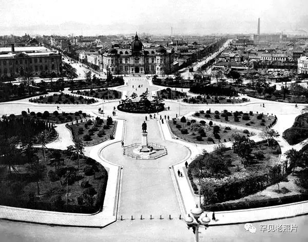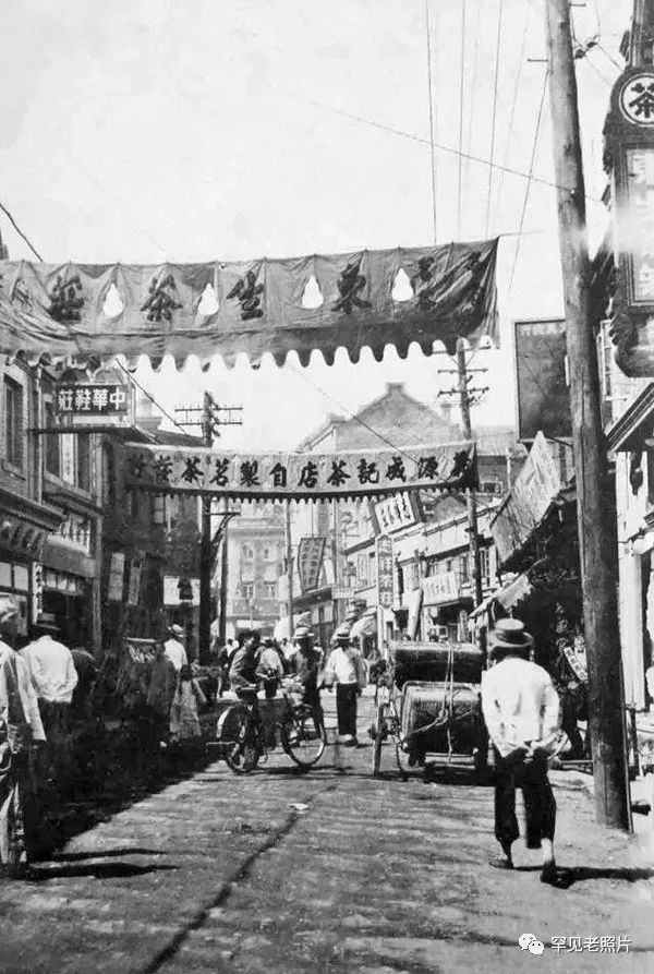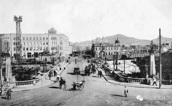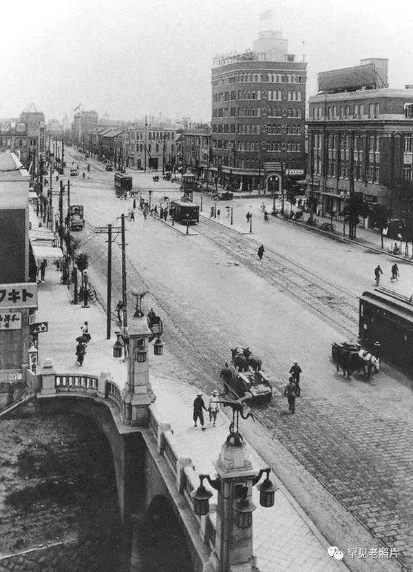 1930年代,大连,连锁街常盘桥方向。大连连锁街旧址位于今大连火车站前胜利广场西侧,长江路、友好街、中山路、青泥街交汇区域内。