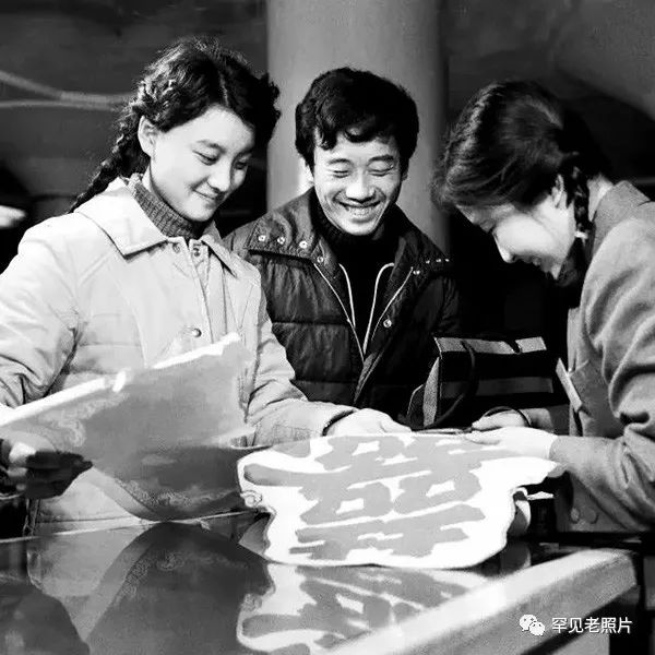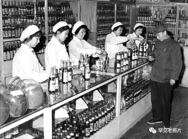1978年,大连沙河口民勇市场,售货员苦练打包技术,用一根绳捆扎罐头、酒类等。郝华臣/摄。