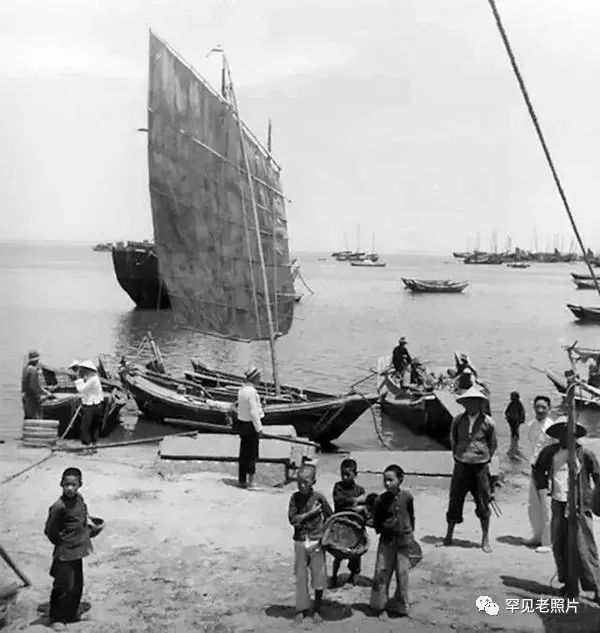 1970年代,大连,一个小小的渔港码头,停在码头的船是小榷子。