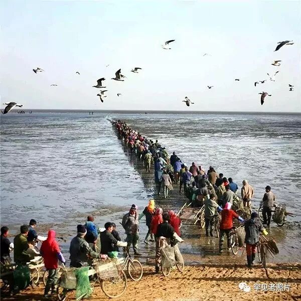 1990年代末,大连庄河,海洋村的渔民,在退潮时,经过近十里的海滩和海岔,前往一处盛产蚬子的滩涂。