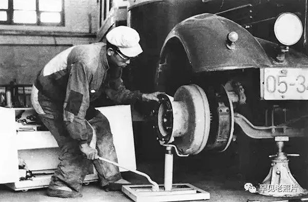 1960年代初,大连货运站,一位工人在安装刹车盘。