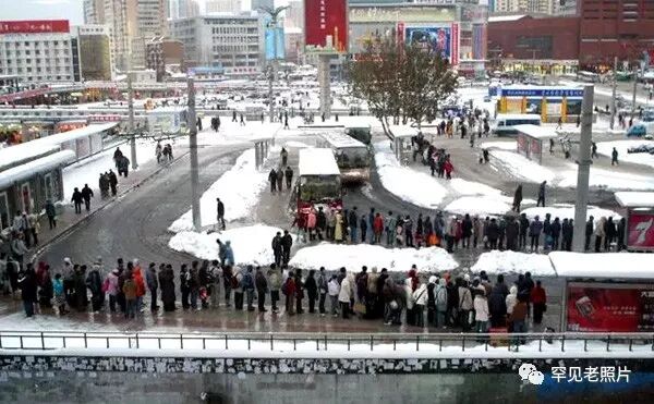 2004年11月,大连,青泥洼桥公交站,人们自觉排队上车。