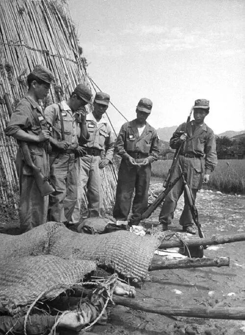 南韩警察破获一个北朝鲜游击队据点,被打死的北朝鲜游击队。