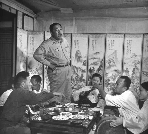 南韩警察正在聚会,庆祝针对北朝鲜游击队所取得的胜利。当官的高歌一曲,陪酒女郎击鼓助兴。