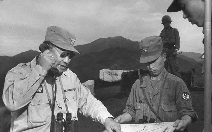 南韩警察队长正在电话里发号施令,命队伍向北朝鲜游击队所在地移动。