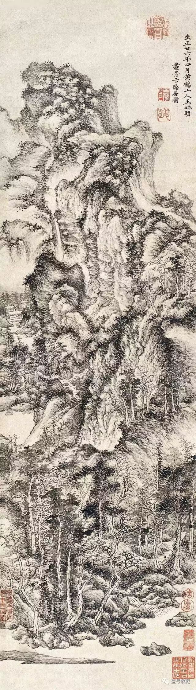 “元四家”是元代山水画的四位代表画家的合称。画风虽各有特点,但主要都从五代董源、北宋巨然的基础上发展而来,重笔墨,尚意趣,并结合书法诗文,是元代山水画的主流,对明清两代影响很大。