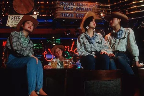 90年代算是改革开放最美好的时光,也是幸福指数比较高的年代,女性也开穿着时髦起来,图中当时这打扮很吸引人。