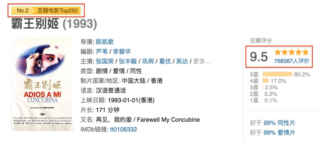 豆瓣电影Top250排名第二,评分高达9.5分。(70多万人参与评价)