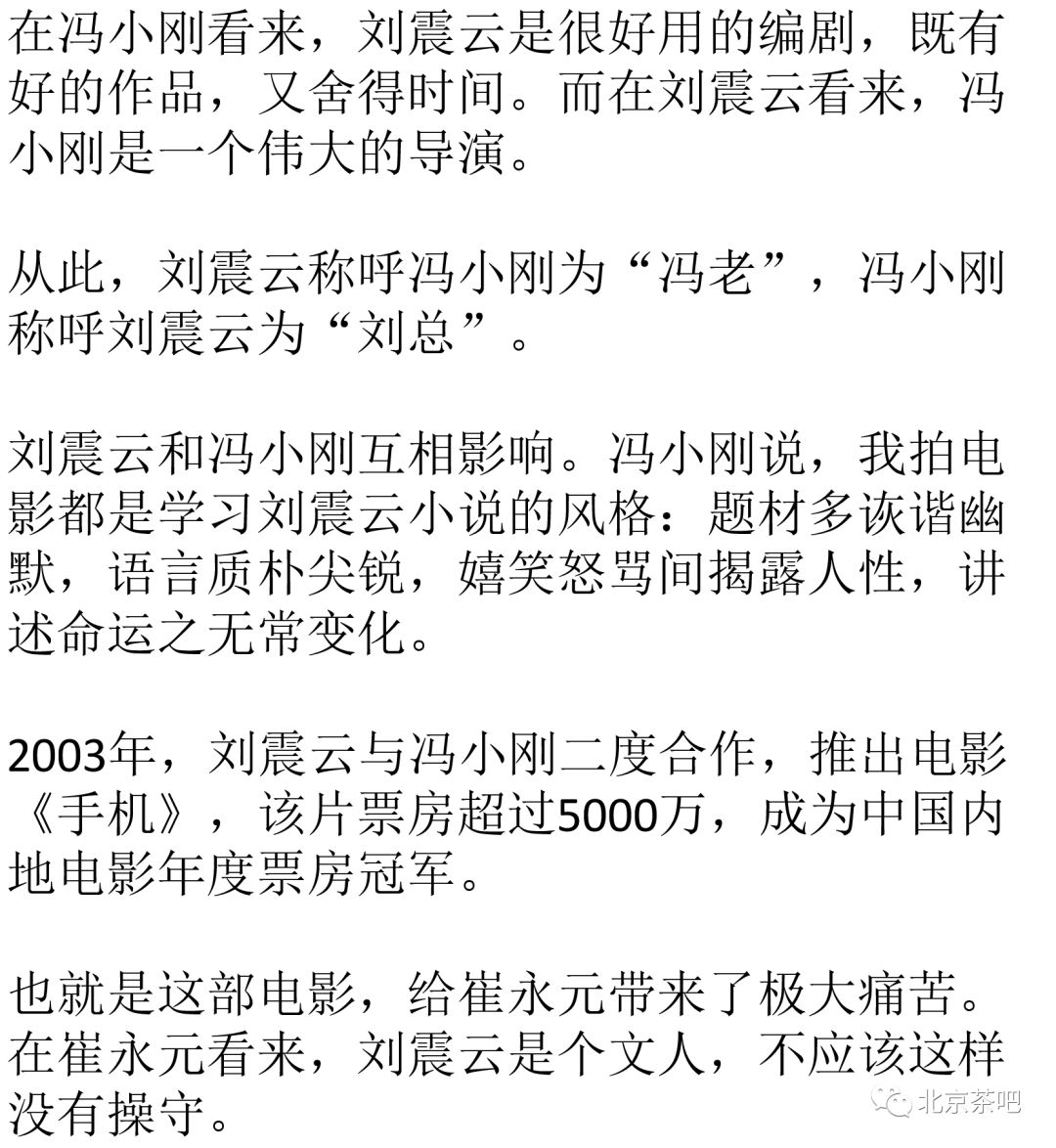 刘震云喜欢文学,冯小刚也喜欢文学,偶尔做首打油诗自娱自乐。