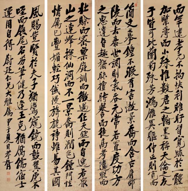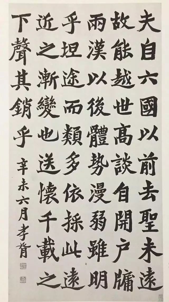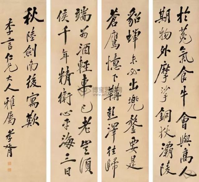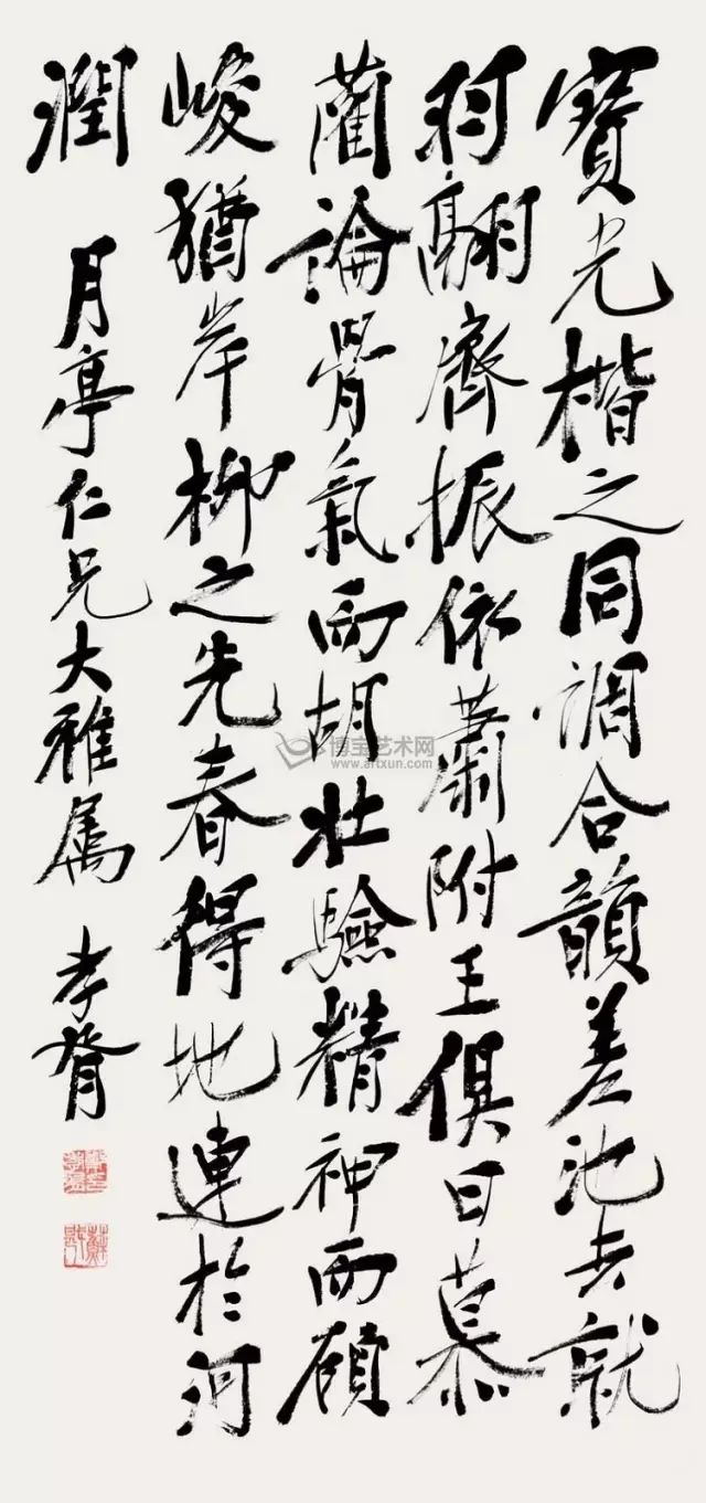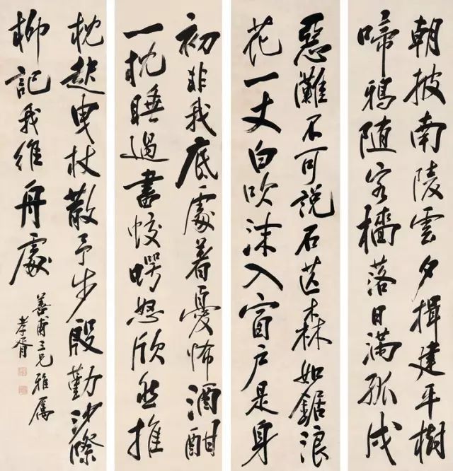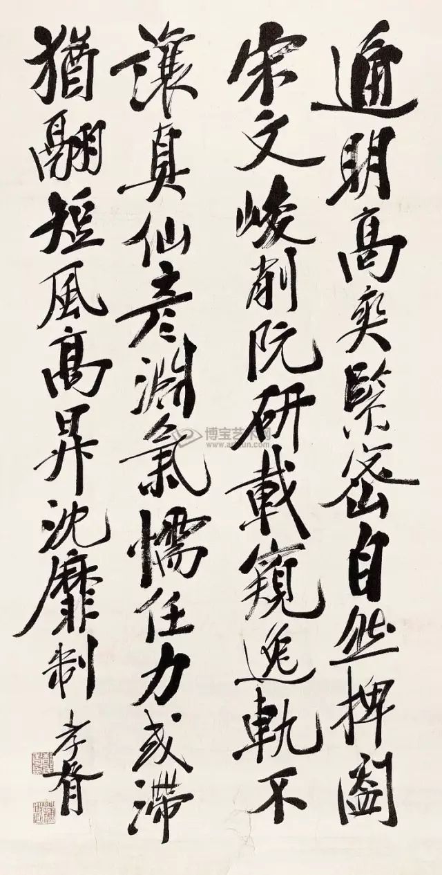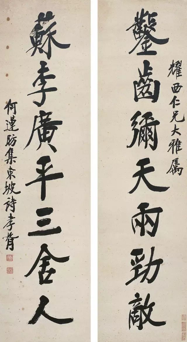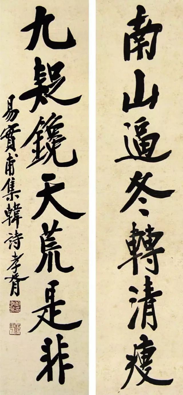 郑孝胥不仅工诗,而且善书,书名极大。他善长楷书、隶书,学颜真卿、欧阳询,受益于北魏碑版,其作品字势偏长而苍劲朴茂,开创了潇洒俊逸、凌厉干练的独特风格。他的行楷不仅流畅飞动,而且劲道十足,这是历代书法家都难以达到的极高境界。