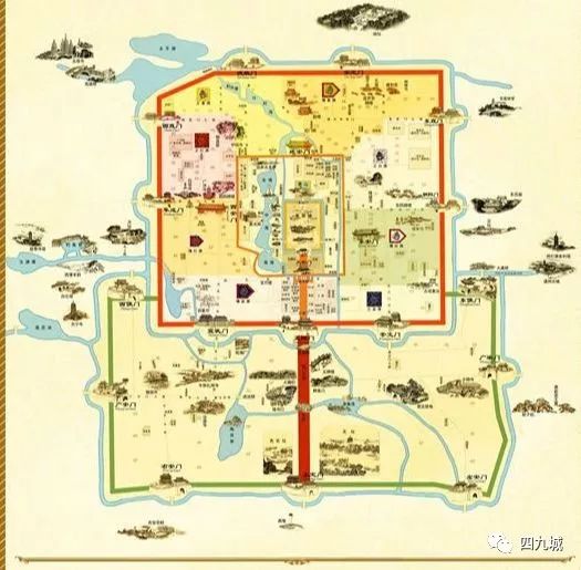 北京有很多的称呼:四九城、北平、大都,其中“八臂哪吒城”最是让人感到神奇。传说北京城原是苦海幽州,由孽龙压着,只有八臂哪吒才可以“镇服”孽龙,因此明成祖时将北京城建成了八臂哪吒城的样子。