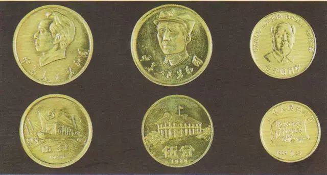 正面图案是不同时期的毛主席肖像,背面图案从左往右分别是党一大召开地南湖游船、遵义会议遗址、军舰,并且把面值和年份都放在了背面。