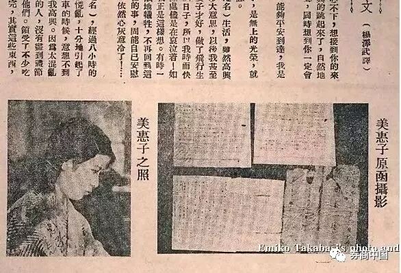 报纸上刊登的美惠子照片和信件